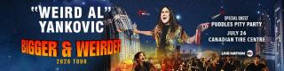 Weird Al brings his legendary full-production multimedia comedy rock show back to the concert stage with the BIGGER & WEIRDER 2026 Tour, playing his iconic hits as well as some never-performed-live-before fan favorites. Al’s long-time band is joined by four additional players to create a super-sized concert experience.